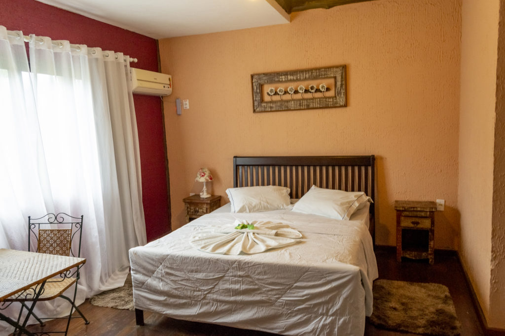 Decorada para proporcionar conforto e aconchego. Localizada no piso térreo, próxima à recepção. Possui cama de casal e banheira de hidromassagem para uma pessoa. Não possui varanda.